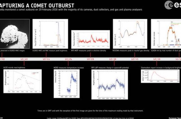 Вивчення всіх даних, які були зібрані за допомогою зонда, дозволило дослідникам встановити можливе джерело викиду. На думку дослідників, ним став крутий схил пагорба Атум. Викид стався в момент, коли більша частина пагорба вийшла з тіні. Це свідчить про те, що можливою причиною викиду став зсув, через який лід з поверхні комети потрапив під пряму дію сонячних променів. У результаті лід перейшов у газоподібний стан і підняв з собою частинки пилу.