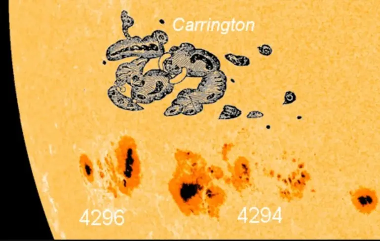AR 4294-4296 приблизно такого ж розміру, як гігантська сонячна пляма, яку спостерігав британський астроном Річард Каррінгтон у вересні 1859 року, що згодом призвела до "події Каррінгтона" —  найпотужнішої сонячної бурі, яку коли-небудь спостерігало людство. Але насправді плями покривають площу поверхні Сонця, що становить близько 90% від розміру плями Каррінгтона.