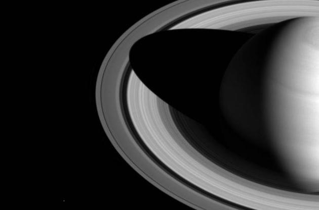На знімку можна побачити Мімас, який розташувався під кільцями Сатурна.