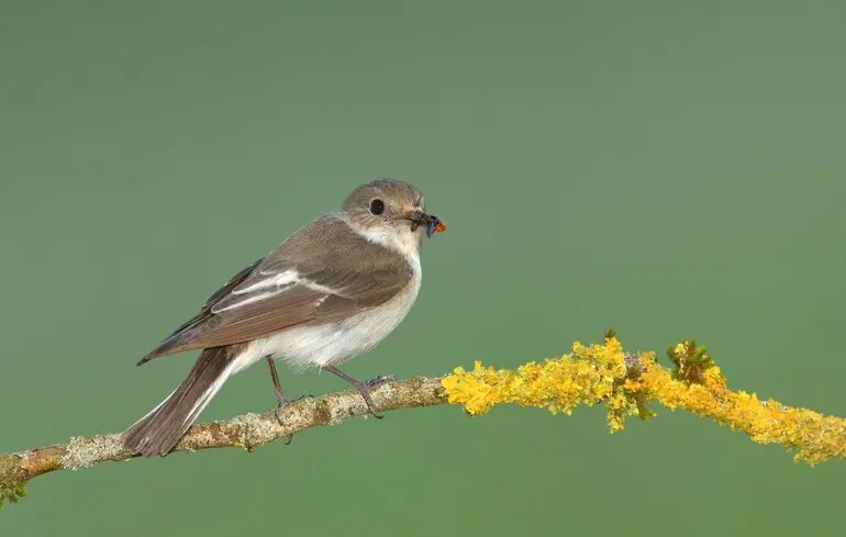 На фото самець цього виду. Мухоловка строката — дрібна співоча пташка, яка виводить пташенят у листяних лісах Європи, а на зиму через Сахару літають до Африки. Коли повертатися, визначають за світловим днем, а не за температурою. І, як наслідок, прилітають надто пізно.