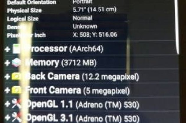 Згідно до нової інформації, пристрій буде оснащено 5,7-дюймовим дисплеєм з Quad HD-роздільною здатністю (2560х1440 пікселів), трьома гігабайтами оперативної пам'яті. Основна камера буде мати роздільну здатність 12,2 мегапікселя, а фронтальна – 5.
