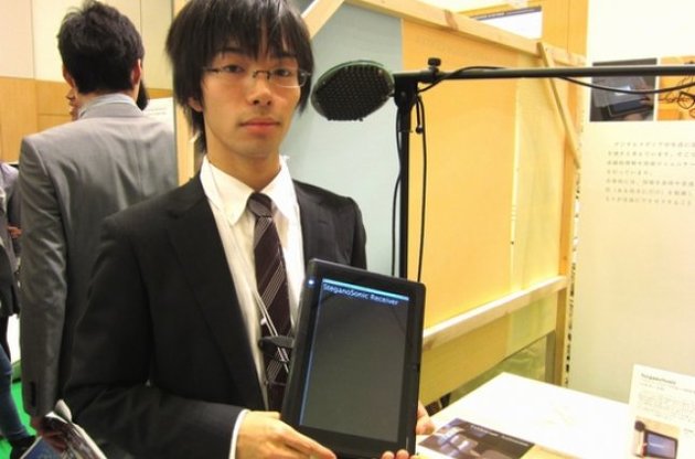 Японські інженери з університету Кейо у місті Токіо представили сьогодні прототип нової технології передачі даних, яка покладається на ультразвукові хвилі. Родзинка технології в тому, що вона працює з максимальною спрямованістю, тобто передавач може бути спрямований на приймач і передати дані тільки суворо визначеному одержувачу, а інші приймачі, навіть якщо вони будуть працювати в тому ж діапазоні, не отримають жодних даних.