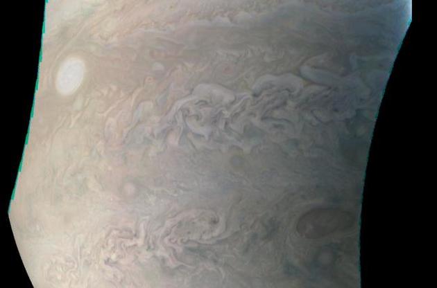 Знімок був зроблений під час третього зближення "Юнони" з Юпітером 11 грудня. Відстань від апарату до планети в цей час становила 24,6 тисяч кілометрів.