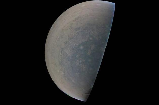 На одному зі знімків, зроблених "Юноною", можна побачити південний полюс Юпітера, а також циклони і овальні шторми в цьому регіоні планети.