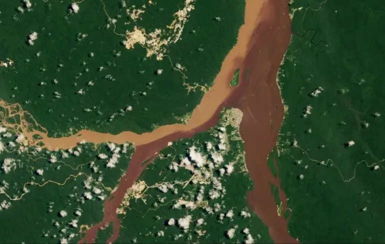 На супутниковий знімок Землі потрапили контрастні кольори місця злиття трьох річок у Гаяні. Різний колір пов'язаний з унікальною геологією країни і руйнівною діяльністю людини, повідомляє Live Science.