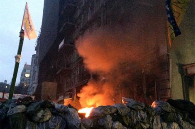 Покришки підпалили незабаром після заяви представників "Правого сектора" про те, що вони готові звільнити вулицю Грушевського після того, як звірять списки всіх затриманих зі списками людей, поміщених під домашній арешт, і переконаються, що в СІЗО нікого не залишилося.