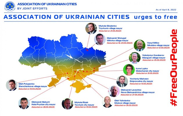 Асоціація міст України звернулася до міжнародних партнерів з проханням долучитися до звільнення голів українських громад, які були викрадені російськими військовими і зараз перебувають в полоні.
