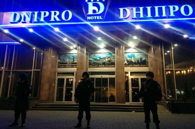 Готель "Дніпро" було заблоковано після того, як один з активістів "Правого сектора" о 20:00 за місцевим часом влаштував стрілянину на Хрещатику, неподалік від кафе "Мафія". Поранення отримали три людини, в тому числі перший заступник голови адміністрації Києва Богдан Дубас. Після інциденту активісти "Правого сектора" викрали соратника до готелю.