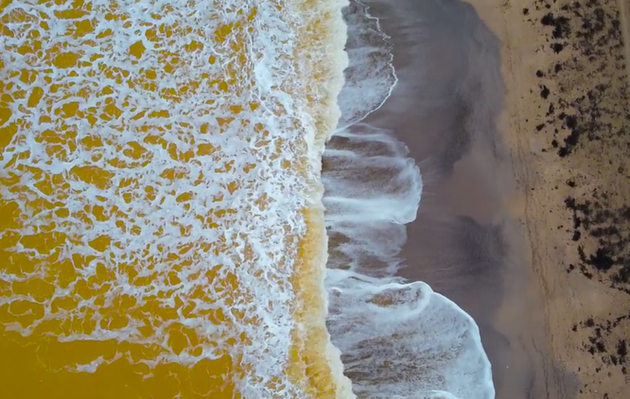 "Цю частину узбережжя ми називаємо Кримськими золотими пісками. У них окрім зернистої частини піщаних фракцій є глиняста, мулиста. Тому під час зимового шторму воно все прибивається до берега - і виходить таке забарвлення", - сказав він.