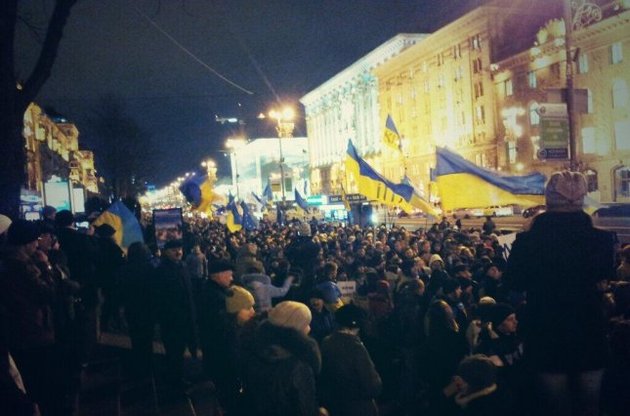 Студенти вишів України вирушили організованою колоною з парку Шевченка на Майдан Незалежності, де о 18.30 розпочнеться мітинг на підтримку євроінтеграції України.