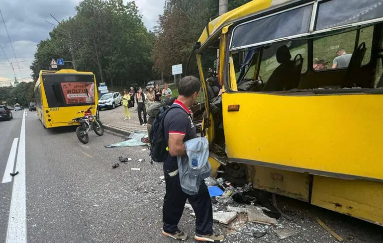 ДТП на вулиці Олени Теліги: маршрутка зіткнулася з автобусом