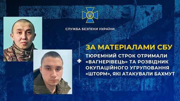 Тюремні строки отримали «вагнерівець» та розвідник окупаційного угруповання «Шторм», які атакували Бахмут. Про це Служба безпеки України повідомила у Telegram. Обох зловмисників взяли в полон під час бойових дій на бахмутському напрямку.