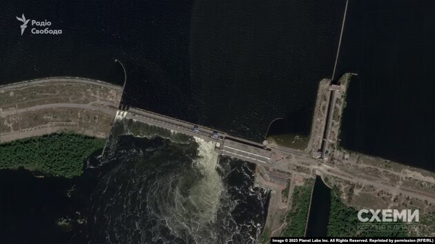Українські чиновники звинуватили російські війська, які контролюють цю територію, в тому, що вони замінували машинний зал Каховської ГЕС і і підірвали її. Глава РНБО України Олексій Данилов заявив, що має «підтверджену інформацію» про російський підрозділ, відповідальний за це. Київ заявив, що Каховська гребля могла бути зруйнована для того, щоб завадити українським військам використовувати звільнені раніше острови на Дніпрі як плацдарм для десанту в окуповану частину Херсонської області.