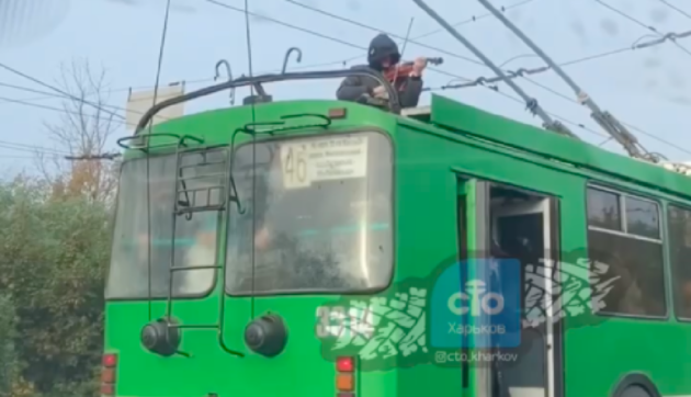 Харків’янин, не встигши зайти в тролейбус, заліз на дах і почав грати на скрипці — відео