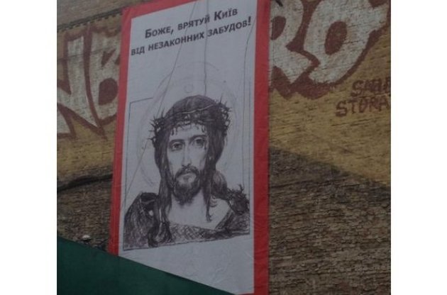 Громадські активісти розмістили на одному з будинків Десятинного провулку Києва величезний банер зі словами "Боже, врятуй Київ від незаконних забудов" на знак протесту проти будівництва на території археологічної пам'ятки часів Стародавньої Русі.