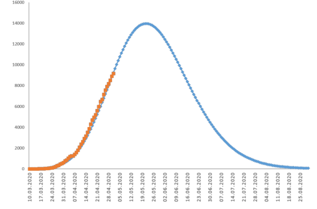 Підтверджуючи слова головного санлікаря України Віктора Ляшка, вчені заявляють, що на п'ятнадцятиденному відрізку часу (з 6 травня по 20 травня) в Україні буде продовжуватися "плато епідемії", але вже у третій декаді травня кількість нових заражених має піти на спад.