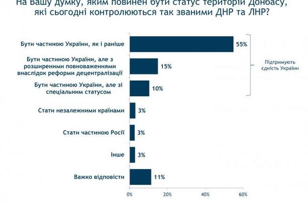 Надати окупованій частині Донбасу особливий статус у складі України готові 10% опитаних.