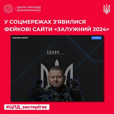 Ці сайти жодним чином не пов'язані з Валерієм Залужним, а за їх створенням, ймовірно, стоїть ворог, який прагне розколу українського суспільства і використовує для цього різні засоби.
