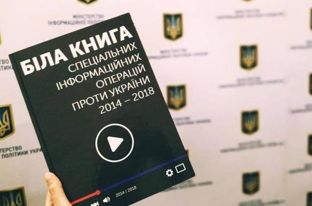 Міністерство інформаційної політики презентувало видання "Біла книга спеціальних інформаційних операцій проти України 2014-2018", в якій зібрані фейки російської пропаганди, спрямовані на підрив територіальної цілісності України та дискредитацію на міжнародній арені. Книга структурована у вигляді набору "серіалів" (наративів) із кількома "сезонами" (піднаративами) у кожному, які показують послідовне використання одних і тих же тим російськими пропагандистами протягом 2014-2018 років.