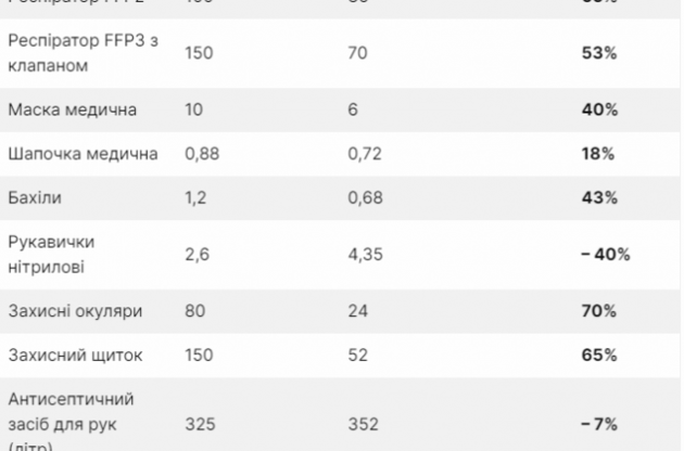 Водночас частина позицій з переліку за своєю розрахунковою вартістю мало не в половину перевищують вартість, за якими ці товари купують, наприклад, волонтери, а різниця в ціні тільки захисних костюмів, які МОЗ хоче купити майже 4,5 мільйона, якщо порівняти з ціною, за якою такі ж за характеристиками костюми закуповують благодійники, - більше мільярда гривень.