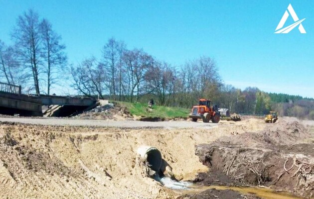 “Влаштовано насип тимчасової об'їзної дороги. Для пропуску води влаштовано труби та шар покриття з щебенево-піщаної суміші”, — деталізував Олександр Кубраков.