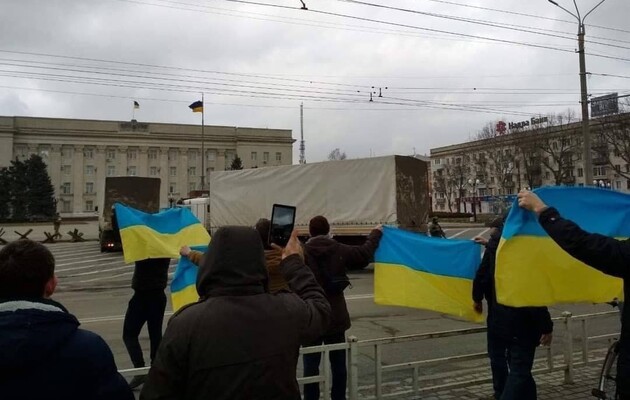 Мирні мешканці в окупованих містах продовжують збиратися на мітинги і чітко висловлювати свою українську позицію.