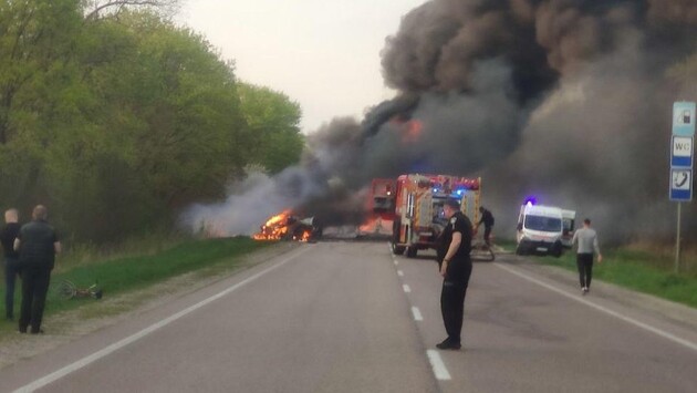 Після зіткнення транспортні засоби загорілися. За попередньою інформацією, загинули 16 осіб, відомо про ще шістьох травмованих.