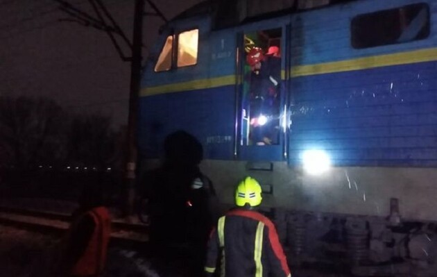 Потерпілого машиніста деблокували з понівеченого локомативу потяга з допомогою спецінструментів. Наразі він перебуває в лікарні, його стан оцінюють медики.