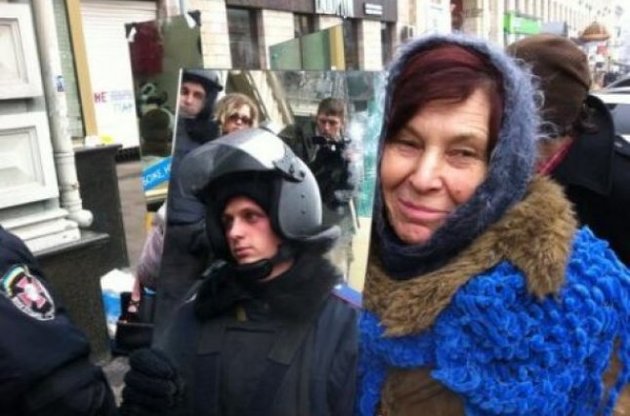 На вулиці Грушевського перед кордоном міліції, який охороняв підступи до урядового кварталу, активісти стояли з дзеркалами, змушуючи бійців дивитися собі в очі. На дзеркалах був напис "Боже, невже це я?".