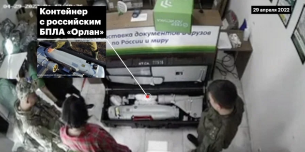 Медіазона також перевірила записи з камер спостереження у Валуйках після 20 квітня. Туди щодня приходили люди у формі та залишали на касі військові наплічники. Так, наприклад, 29 квітня військовий притягнув важкий контейнер з безпілотником — імовірно, Орланом. Такі БПЛА російські окупанти використовують для підтримки конвоїв, виявлення цілей і коригування вогню. Журналісти не змогли відстежити отримання безпілотника в пункті призначення.