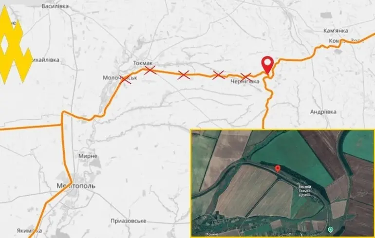 "Наш агент успішно провів диверсію на залізниці в районі Верхнього Токмака за координатами 47°13'22.2 "N 36°18'21.9 "E. Унаслідок руйнування ключової релейної шафи тимчасово заблоковано рух військових вантажів на напрямках Запорізької та Херсонської областей", - повідомили партизани.
