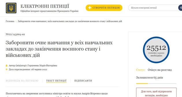 Петиція про заборону очного навчання до закінчення дії військового стану менш як за місяць набрала понад 25 тисяч голосів українців.