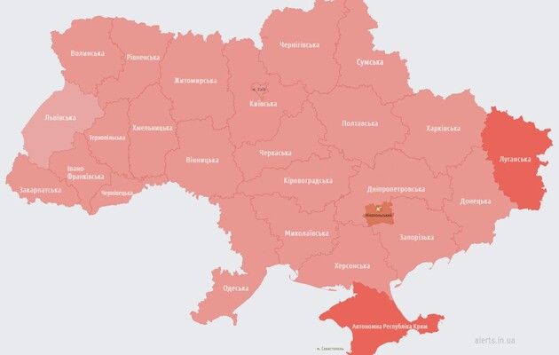 Станом на 20:55 повітряна тривога оголошена по всій території України.