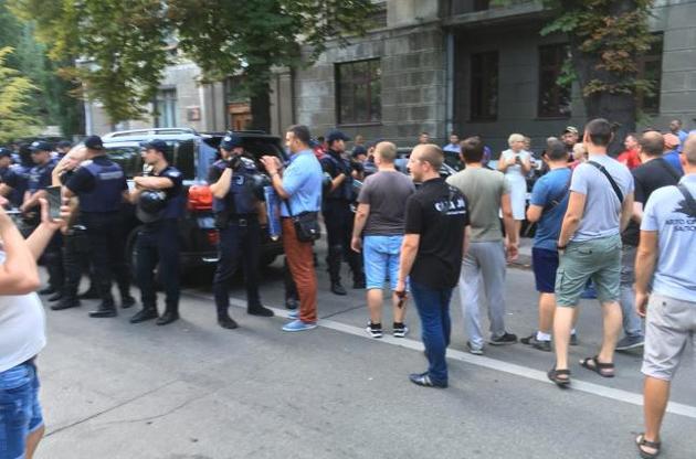 "Вчора до Печерського управління поліції надійшло повідомлення, що на перетині вулиць Інститутська та Садова під час блокування руху автомобілів активіст отримав травму ноги, а інші мітингувальники пошкодили скло іномарки. Попередньо встановлено, що рух машини "Тойота Ленд Крузер" заблокували кілька десятків осіб. Вони чинили хуліганські дії та розбили заднє скло іномарки. У результаті один із чоловіків отримав травму ноги, після чого його доставили до лікарні", - йдеться в повідомленні поліції.