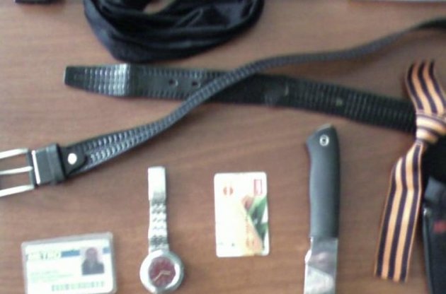 Під час затримання 38-річний громадянин РФ повідомив, що є командиром одного з підрозділів народного ополчення Донбасу". В особистих речах затриманого було виявлено військову форму, ніж, балаклаву та карту Луганської області.