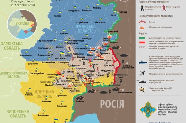 Він також повідомив, що протягом останніх діб підрозділи Збройних сил України вступали в бойове протистояння з бойовиками в населених пунктах Степанівка, Григорівка, Червоний Яр, Перемога, Шишкове, Комишне, Новоанівка, Червона Таливка, Дмитрівка, Сабивка та аеропорту Луганська.