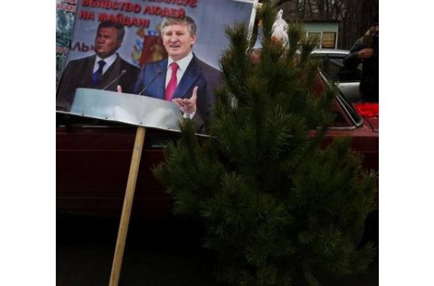 Як відомо, 18 грудня в Києві активісти Євромайдану провели мітинг біля київського офісу компанії СКМ Ріната Ахметова і встановили "криваву ялинку" - штучне дерево було обвішано фотографіями людей, побитих міліцією 30 листопада на майдані Незалежності.