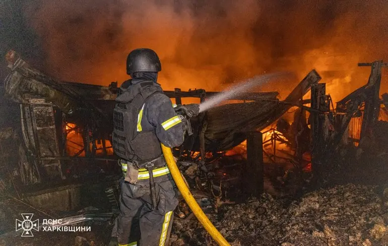 Державна служба з надзвичайних ситуацій повідомила, що вночі під час російської атаки на Харків у Холодногірському районі виникло чотири пожежі – горіли будівля магазину, господарча споруда та інші об’єкти. Пошкоджені приватні житлові будинки й автомобілі. Також повідомляється, що є постраждала людина.