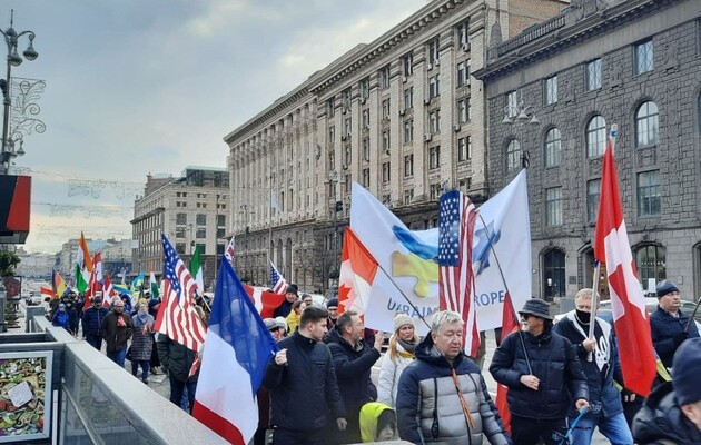 У центрі Києва пройшов міжнародний марш єдності, який організували іноземці, що проживають зараз в Україні, проти російської агресії. Про це повідомляє Укрінформ.