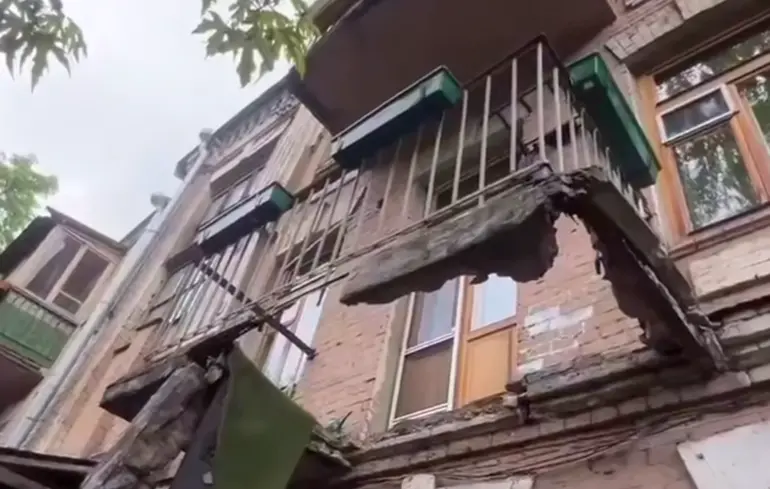 “У той час, коли літають ракети та дрони, нас травмують балкони через чиюсь безвідповідальність!”, – написав режисер та додав відео з місця події.