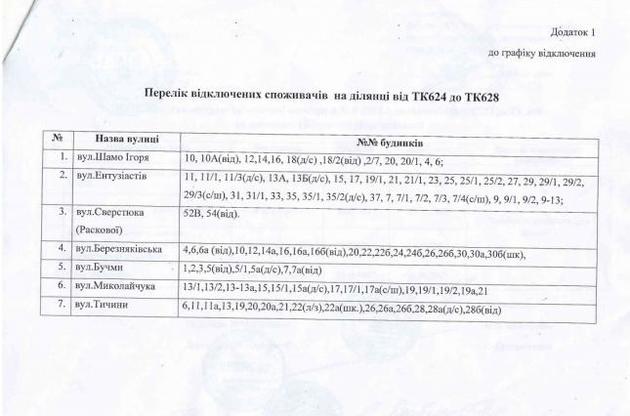 Наголошується, що гаряче водопостачання відключать у будинках по вул. Бучми, В. Миколайчука, Березняківській, П. Тичини, Ентузіастів, Сверстюка та бул. В. Шамо.
