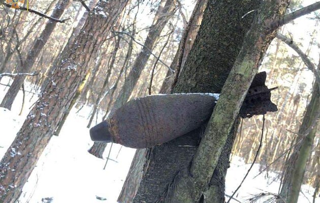 "Невже без малого 80 років, з часів Другової світової, ця мінометна міна провисіла на дереві ніким не помічена? Це тим більше дивовижно, бо знаходилася вона буквально в парі сотень метрів він житлових будинків села Гримайлівка Золочівського району", - йдеться в повідомленні.