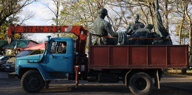 У Львові 9 листопада з Пагорба слави демонтували три радянські скульптури - "Мати-Батьківщина", "Воїн з прапором", "Присяга". Пам’ятники перевезуть в музей тоталітарних режимів "Територія терору", повідомили у Львівській міській раді.