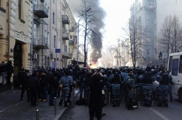 Міліція перекрила вулицю за допомогою трьох вантажівок. Коли активістам не дали пройти до Ради, і почали кидати в них світлошумові і газові гранати, ті підпалили дві з трьох машин.