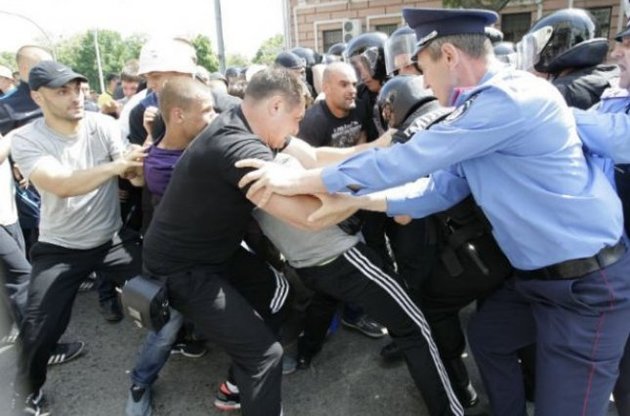 Нагадаємо, 18 травня на вулиці Велика Житомирська в Києві сталося зіткнення між прихильниками опозиції, які вийшли на акцію "Вставай, Україно!", і групою бритоголових молодих людей спортивної статури, які прийшли з "антифашистського" мітингу Партії регіонів.