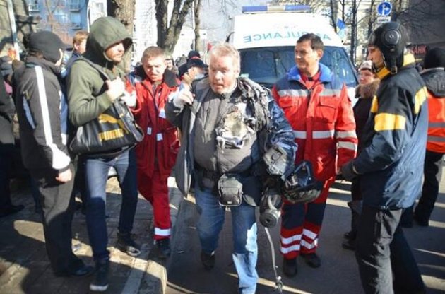 5. Невідомі біля урядового кварталу побили фотографа УНН Олександра Козаченка і розбили йому камеру. Інцидент стався, коли він разом з Максимом Требуховым в жилеті з написом "Преса" знімали пожежу в офісі Партії регіонів і те, як його гасять.
