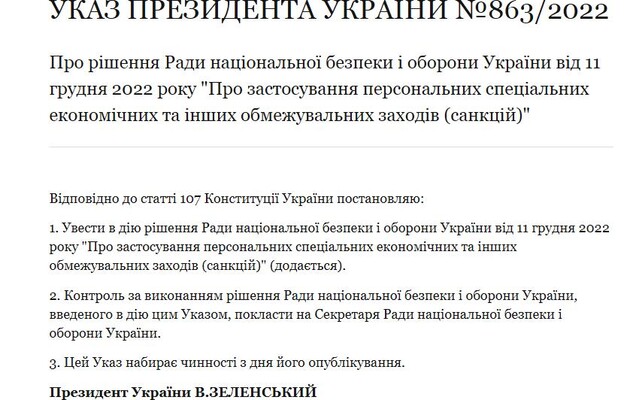 Указом президента України №863/2022 запроваджено санкції проти низки ієрархів УПЦ Московського патріархату.