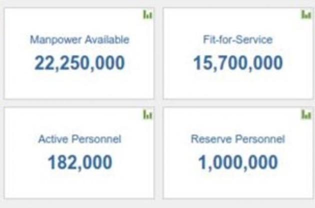 Ключовим критерієм у рейтингу є людський ресурс. Як видно, перші місця в рейтингу займають країни з великим населенням. Global Firepower нарахували в Україні 44 мільйони.
