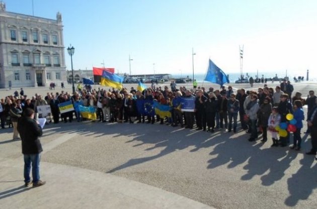Близько п'ятисот українців зібралося у Лісабоні на Комерційній площі. Активісти виступили українською та португальською мовами, висловившись за неприпустимість агресії з боку Росії, вимагали термінової відставки уряду Миколи Азарова.