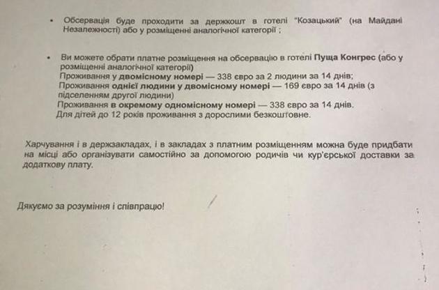 Туристам пропонують пройти платну обсервацію у київських готелях, хоча можна пройти її і безкоштовно в готелі "Козацький" у центрі Києва.